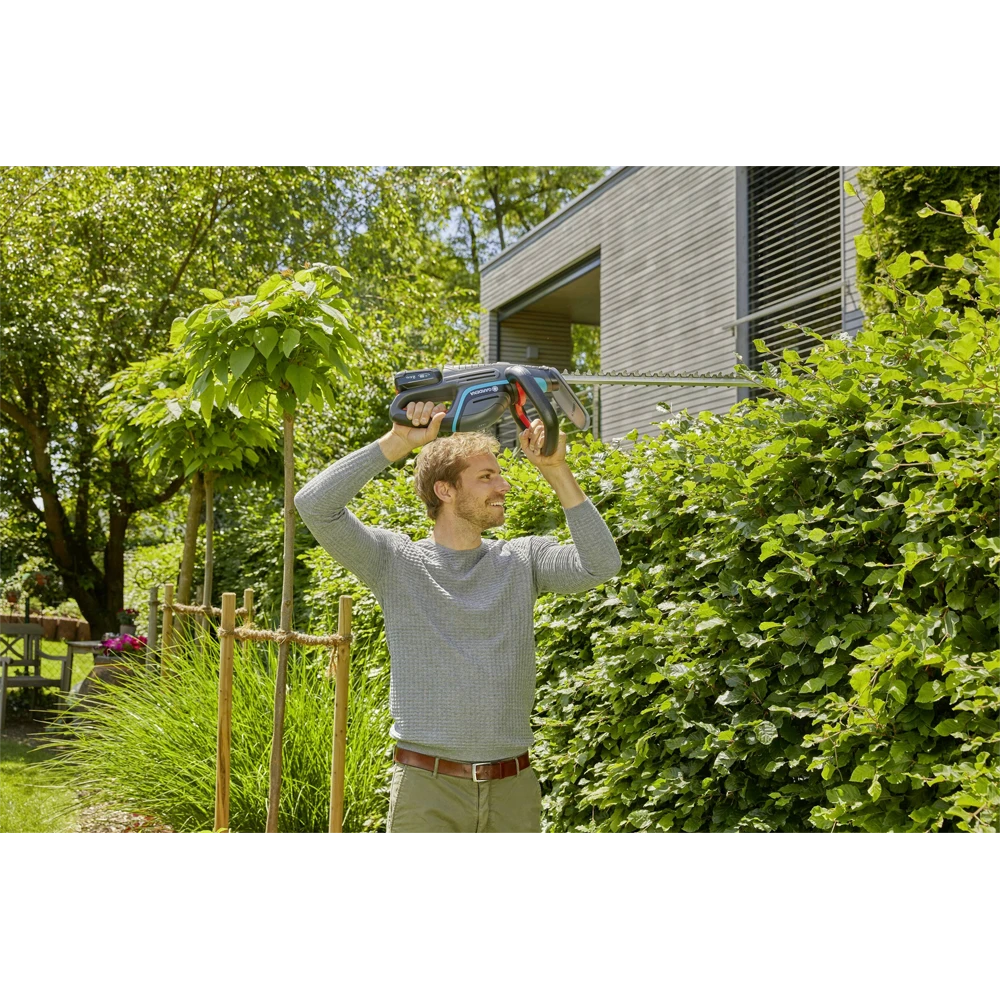Snoerloos, handig, licht en gebruiksvriendelijk: met de GARDENA accu-heggenschaar ComfortCut 60 / 18V P4A snoeit u middelgrote heggen zonder al te veel moeite.Dankzij een duidelijk zichtbare LED-indicator direct op het gereedschap bent u altijd op de hoogte van het huidige laadniveau, zodat je weet wanneer het tijd is om een ​​pauze te nemen om het op te laden of om een ​​andere accu aan te sluiten. De heggenschaar is compatibel met alle accu’s van de 18V POWER FOR ALL ALLIANCE. Afhankelijk van het type accu dat wordt gebruikt, kan het product een accuduur van maximaal 135 minuten bereiken en tot 450 vierkante meter heg snoeien.Met zijn ErgoLine-handgreep met geïntegreerde schakelaar ligt de schaar met een bladlengte van 60 centimeter altijd comfortabel in de hand, in welke positie u ook werkt. het mesje zorgt ervoor dat de mesjes niet beschadigd raken. De bladgeometrie is perfect ontworpen zodat de snede altijd zuiver is en het werk gemakkelijk uit te voeren is – zonder onderbrekingen. We weten dat u onder de indruk zult zijn van de resultaten! Met de ComfortCut is het snoeien van heggen niet langer een vermoeiend, inspannend karwei, maar een dat in een mum van tijd kan worden gedaan.De GARDENA Accu-heggenschaar ComfortCut 60 / 18V P4A solo wordt geleverd zonder accu en oplader. Hij is compatibel met alle 18V-accu’s van de POWER FOR ALL ALLIANCE, een van de grootste accu-allianties van meerdere merken van toonaangevende fabrikanten. Deze accu’s kunnen worden gebruikt voor tal van apparaten in huis en tuin. U bespaart dus geld en blijft flexibel! Passion powered by GARDENA – Tuingereedschap op accu dat u de vrijheid geeft om te creëren.