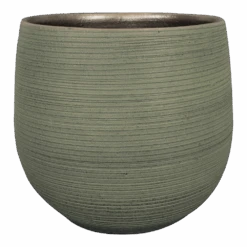 Kijk eens naar deze stijlvolle pot met mondaine uitstraling. Het vrijzinnige streeppatroon brengt kalmte met een knipoog naar sjiek. De binnenkant is goudkleurig. Pottenbakkers in Portugal maken deze serie van TS Collection nog traditioneel gemaakt. Dat gebeurt op draaiplateaus, met de handen. Vervolgens wordt de textuur aan de buitenkant met een speciale tool aangebracht. Daarna wordt de pot gebakken en vervolgens, ook handmatig, gespoten in de juiste kleur. Er is keuze uit frisse, flitsende kleuren volgens de laatste trends.