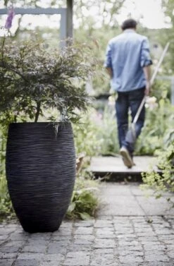 Capi Bloempot Hoog Nature Elegant Deluxe Rib NL – D38 X H58cm – Zwart