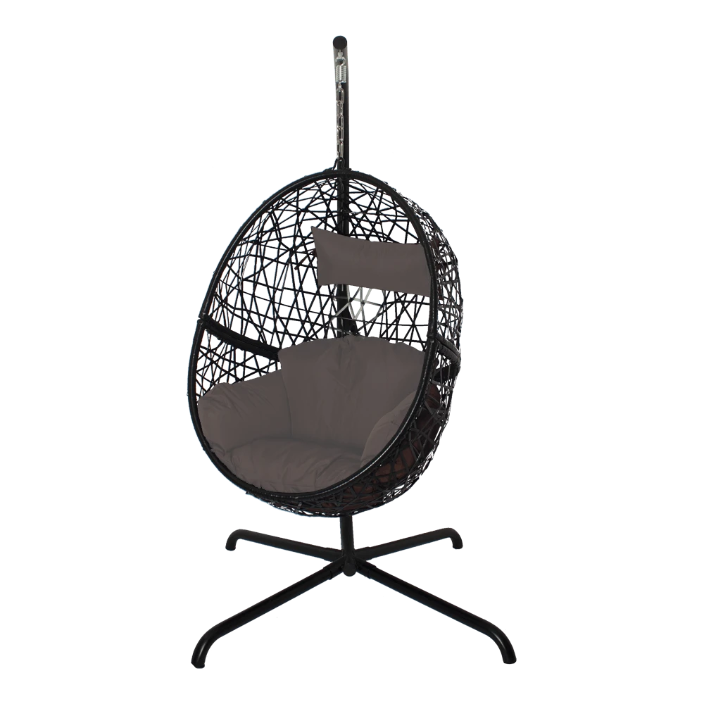De hangstoel Laos heeft een zwart frame en de het kussen is Grijs/Antraciet van kleur. De hangstoel is gemaakt van hoogwaardig Wicker en gepoedercoat Staal. De Hangstoelen zijn verkrijgbaar in verschillende kleur en modellen. Bestel eenvoudig en goedkoop een hangstoel bij Biezen of bezoek eens onze showroom!