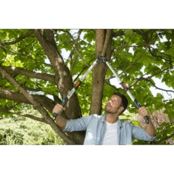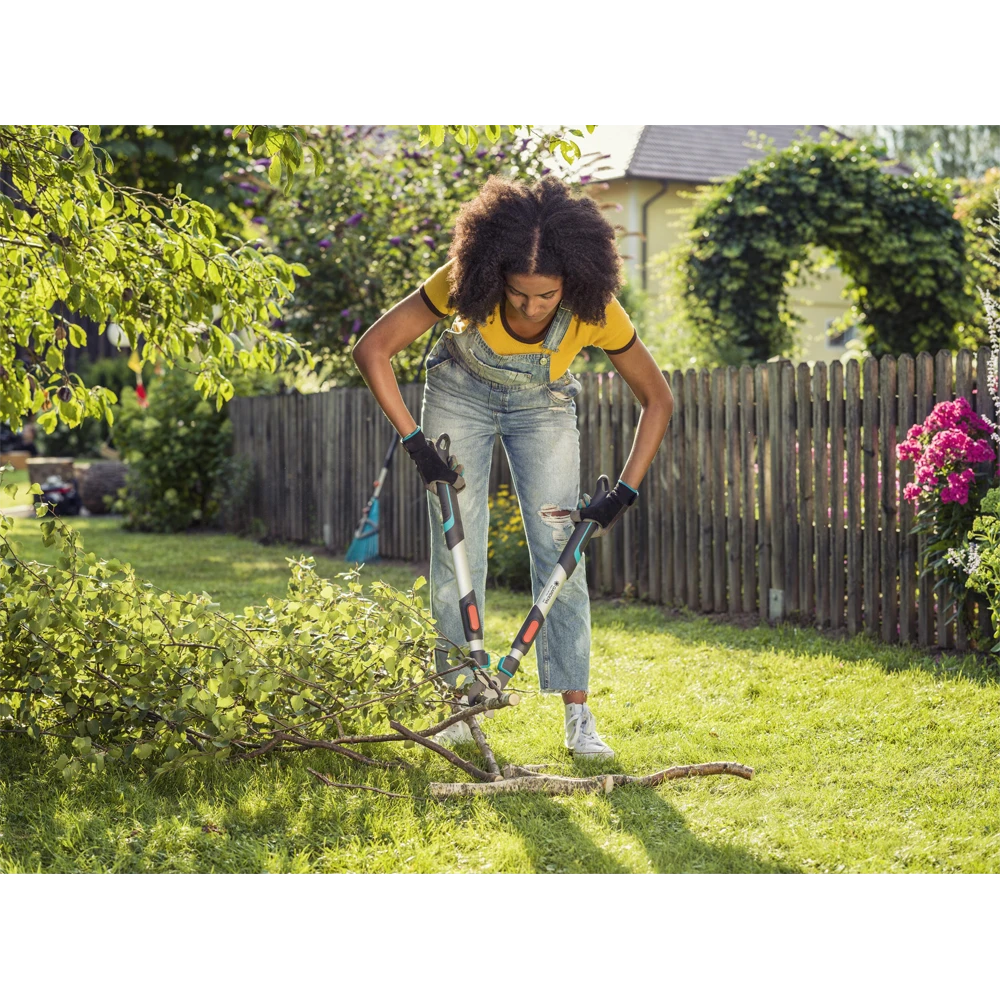 De GARDENA takkenschaar TeleCut 650-900 B is een bypass snoeischaar voor het snoeien van vers hout. Vanwege het lage gewicht en de uitstekende werking van de armen, heeft u weinig kracht nodig om te snoeien. De in lengte verstelbare hefboomarmen maken ook het nauwkeurig snoeien van hogere takken mogelijk. Daarnaast beschermen stopbuffers van speciaal kunststof uw gewrichten. Precisiegeslepen messen met antikleeflaag garanderen een nauwkeurige snede die vriendelijk is voor planten.